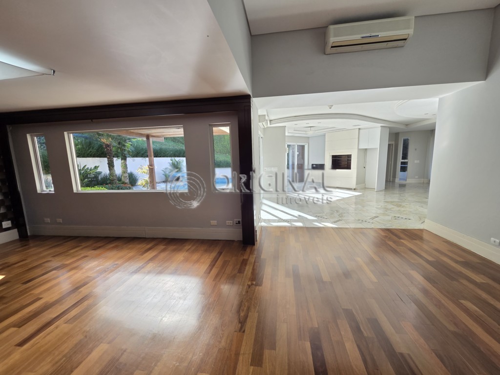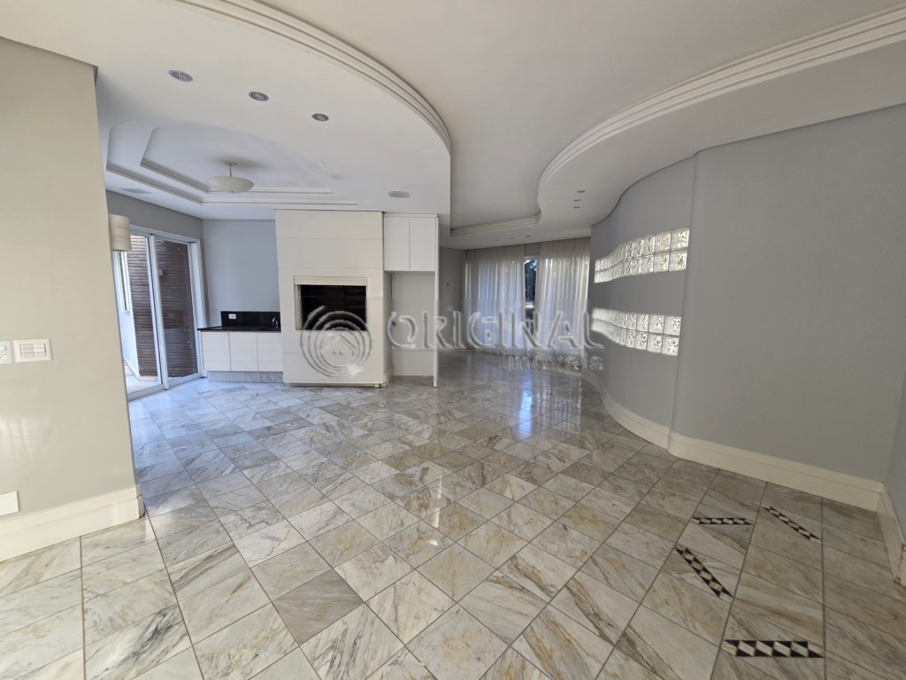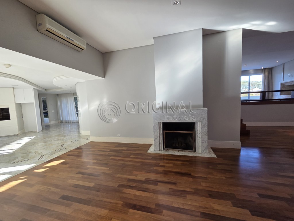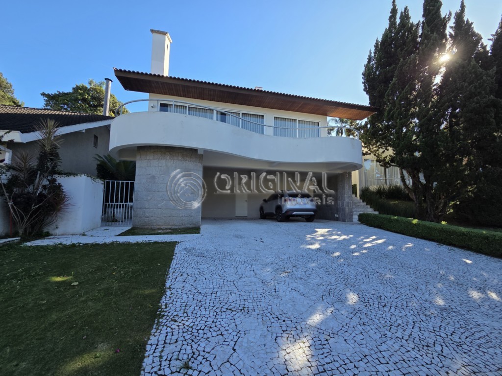 A casa é composta por salas amplas para até quatro ambientes, com lareira e sacada, cozinha funcional, área de serviço e dois lavabos. Conta com cinco dormitórios, sendo quatro suítes, incluindo uma suíte máster com closet e banheira de hidromassagem.