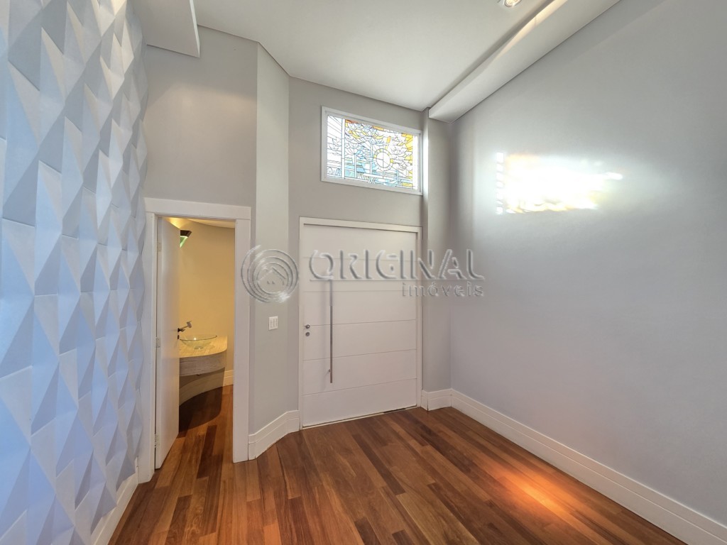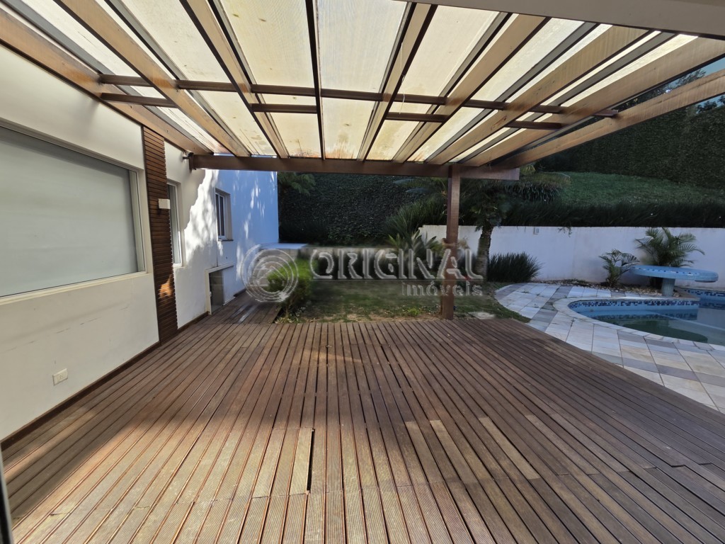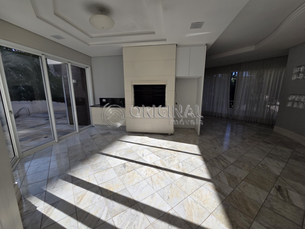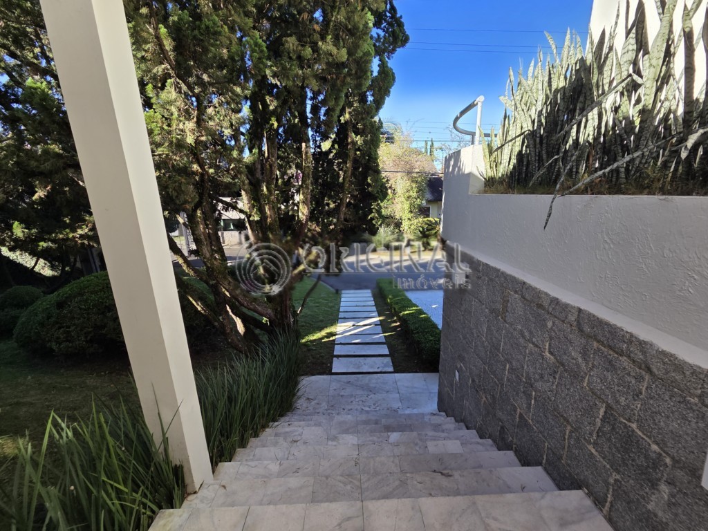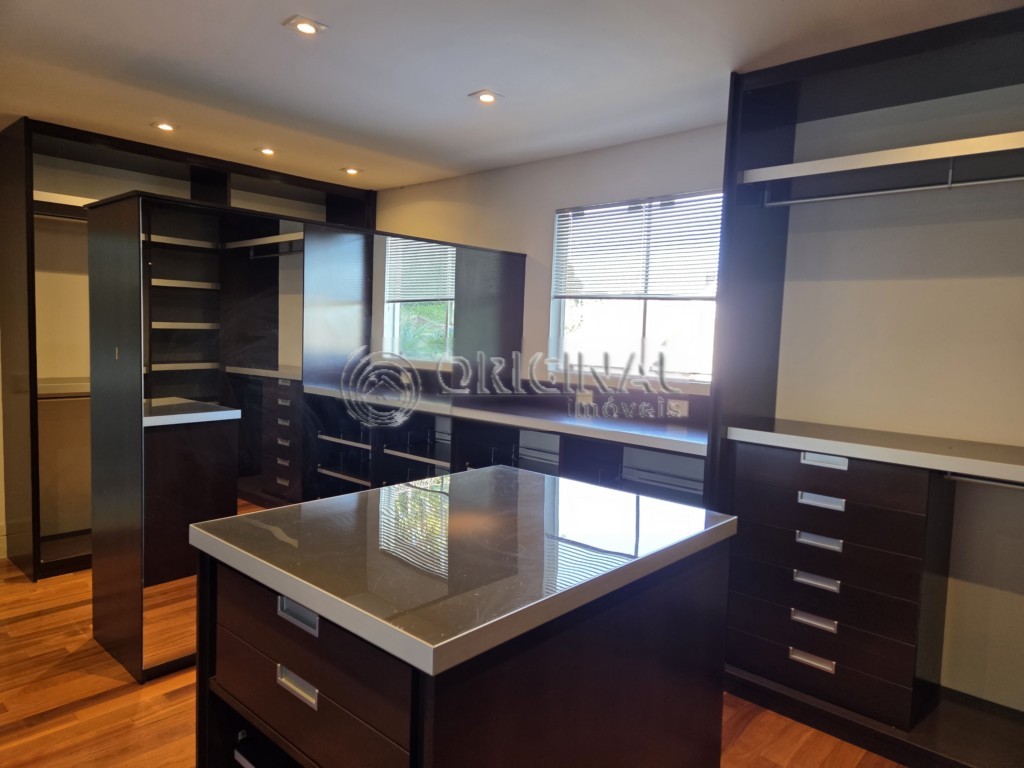 A casa é composta por salas amplas para até quatro ambientes, com lareira e sacada, cozinha funcional, área de serviço e dois lavabos. Conta com cinco dormitórios, sendo quatro suítes, incluindo uma suíte máster com closet e banheira de hidromassagem.