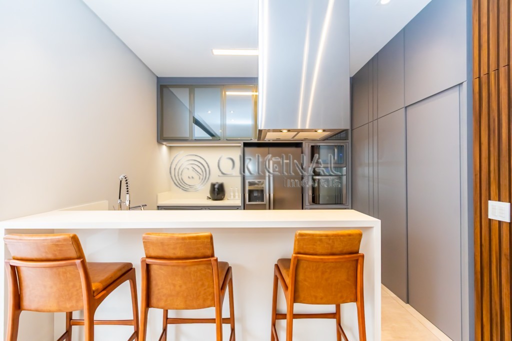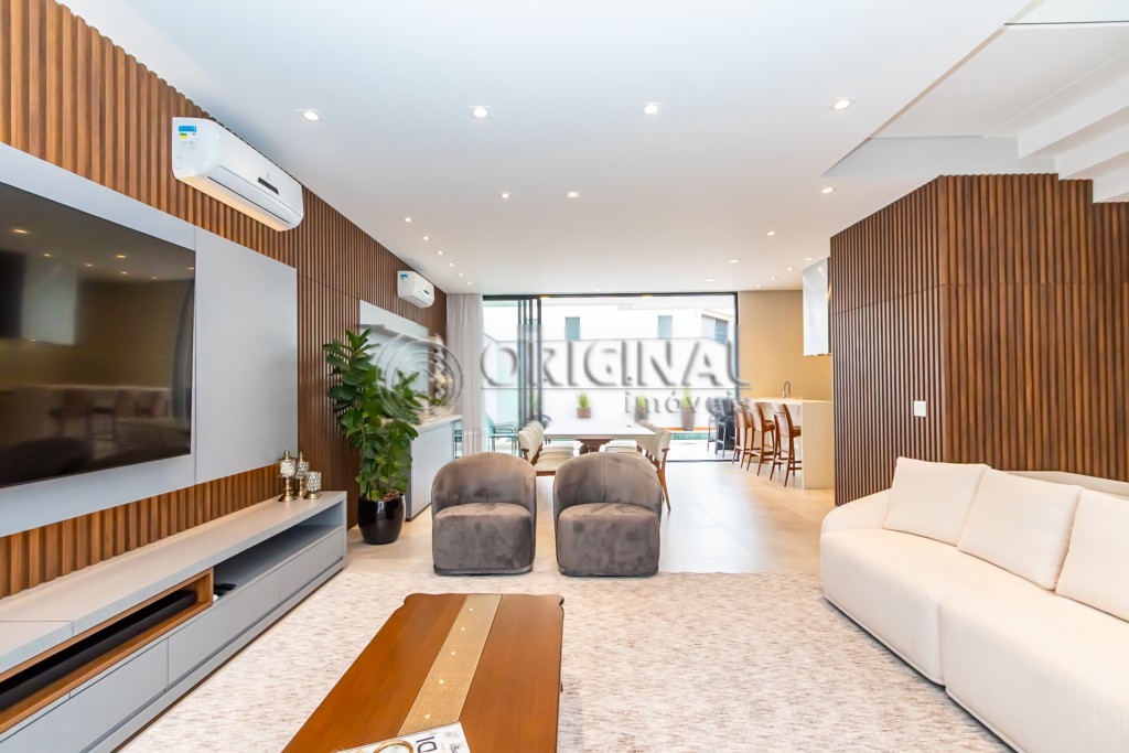 Ao entrar, você será recebido por um imponente pé direito duplo e esquadrias do chão ao teto, que garantem uma iluminação natural privilegiada e uma atmosfera acolhedora. O projeto arquitetônico promove a integração total da área social.