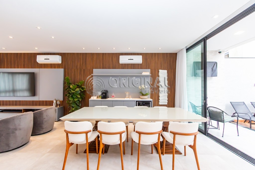 Sala Principal e Sala de Jantar: Espaços amplos e conectados, com um elegante painel em madeira na sala de jantar, criando um ambiente sofisticado.